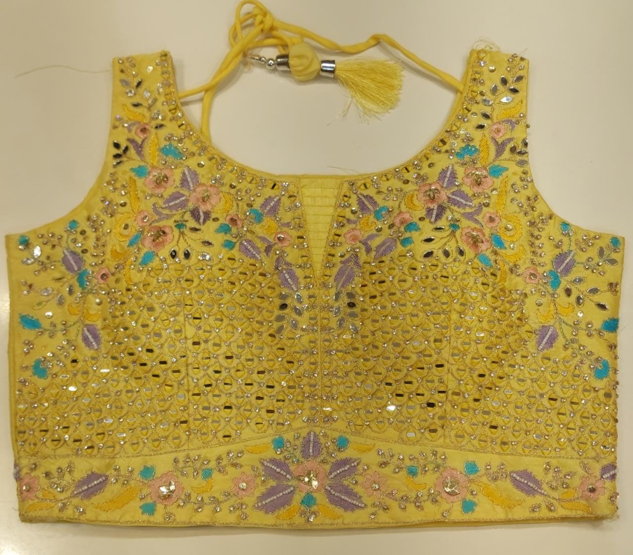 Fabric :georgette Lehenga with hand work embroidered blouse. Fully stitched to UK Size 14/16. Bust 40/42 inches