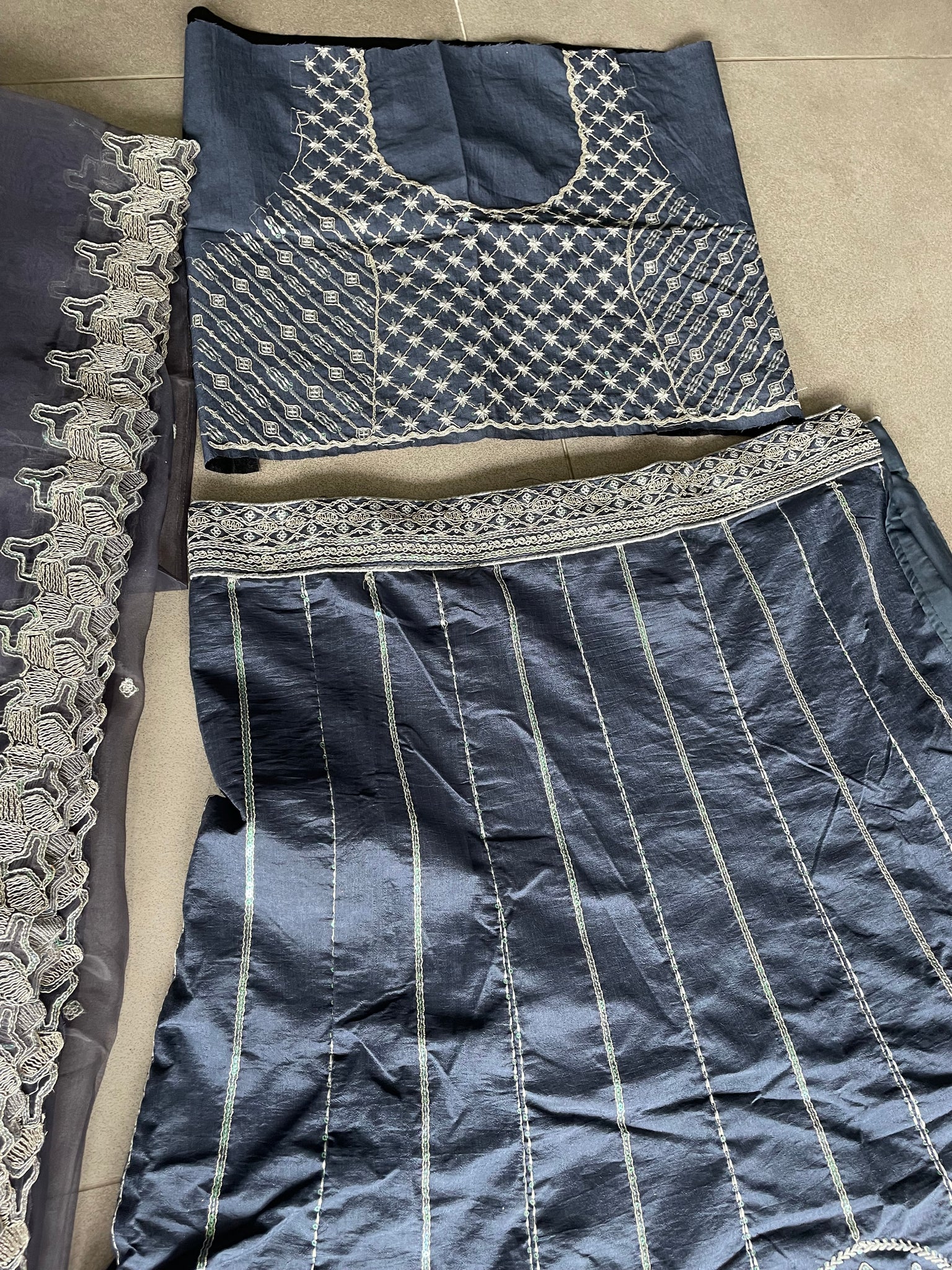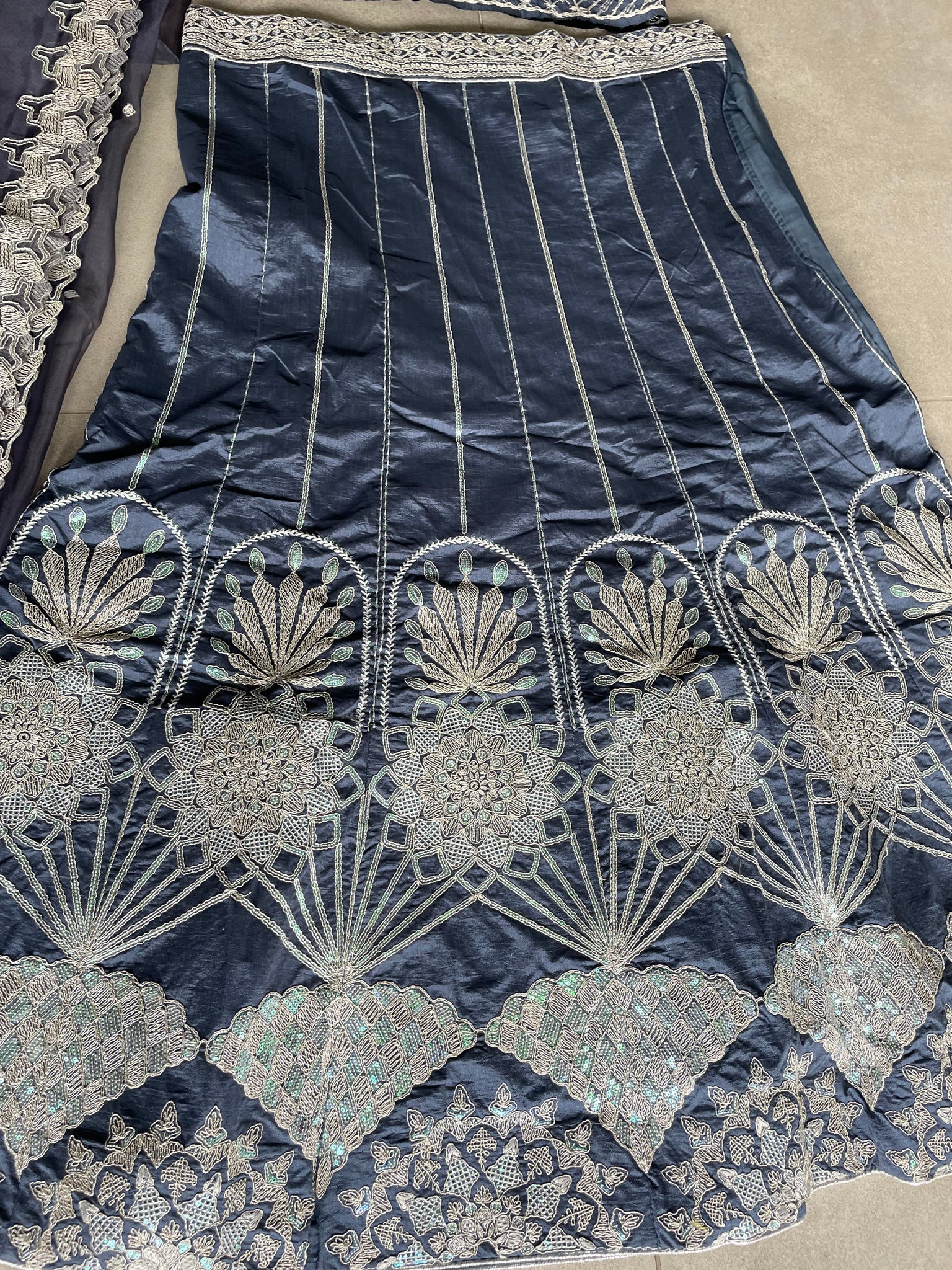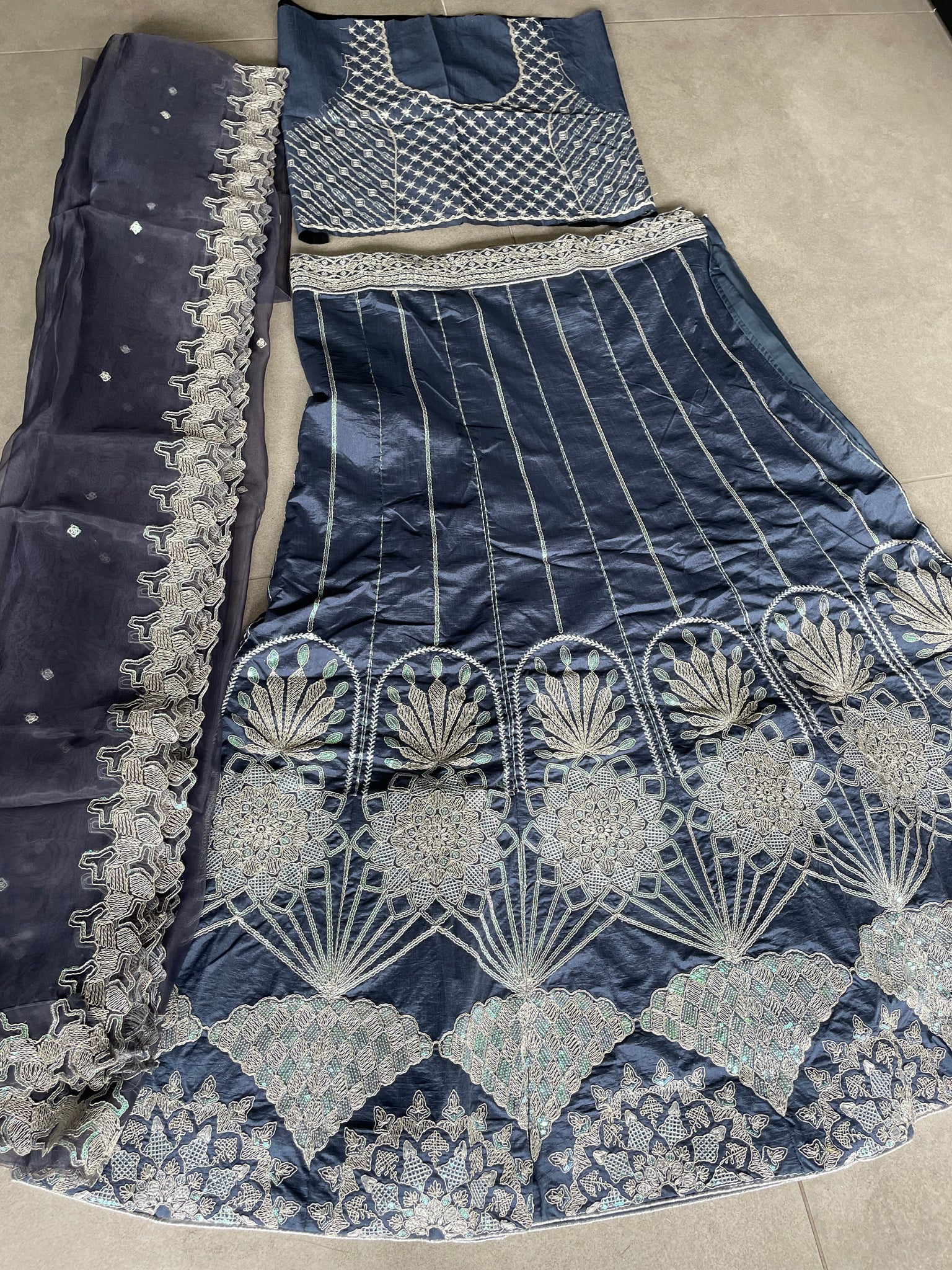Rangoon silk lehenga with rainbow sequins , thread & dori work