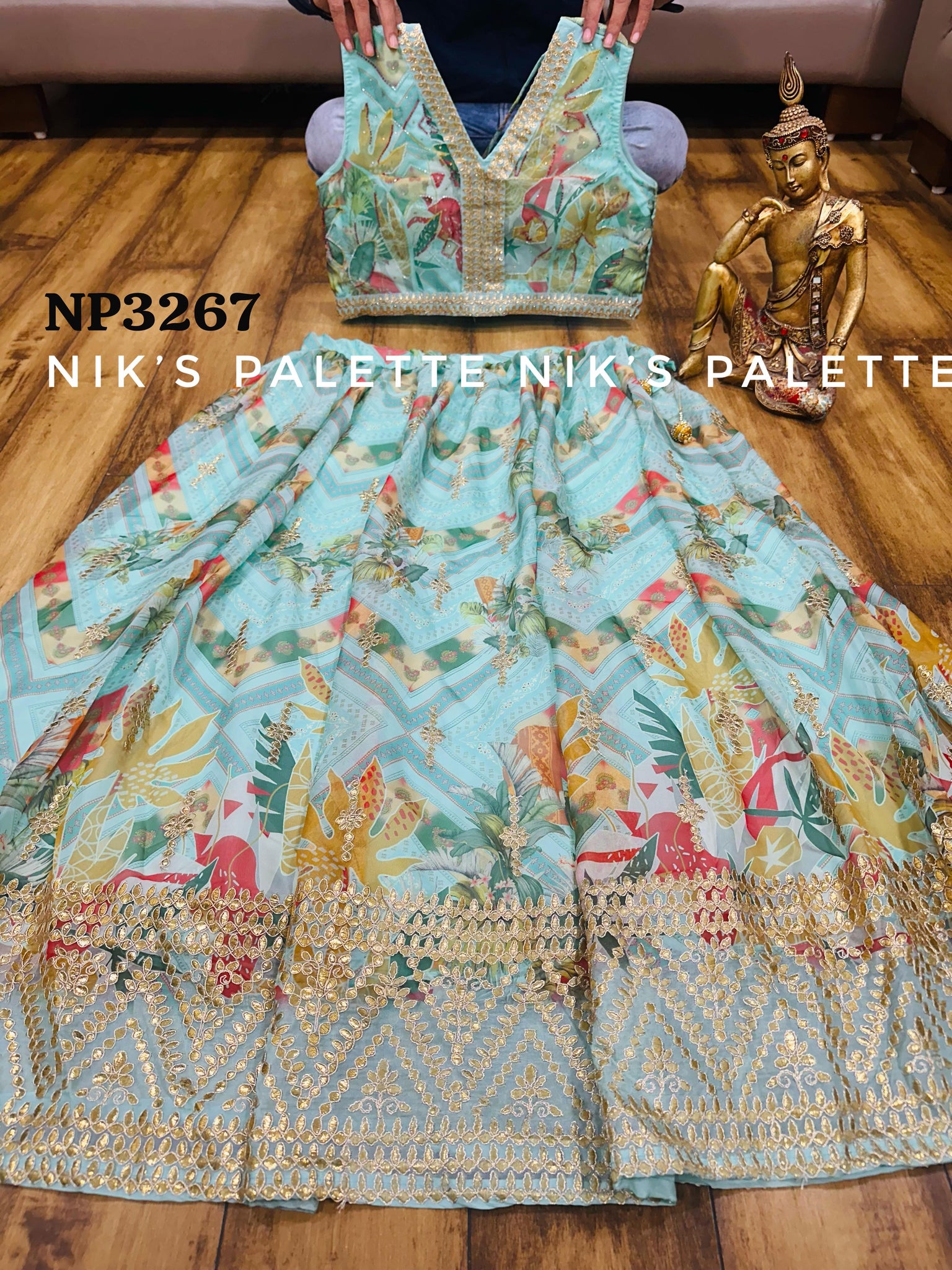 Premium pure organza silk beautifullly digital printed skirt with organza dupatta