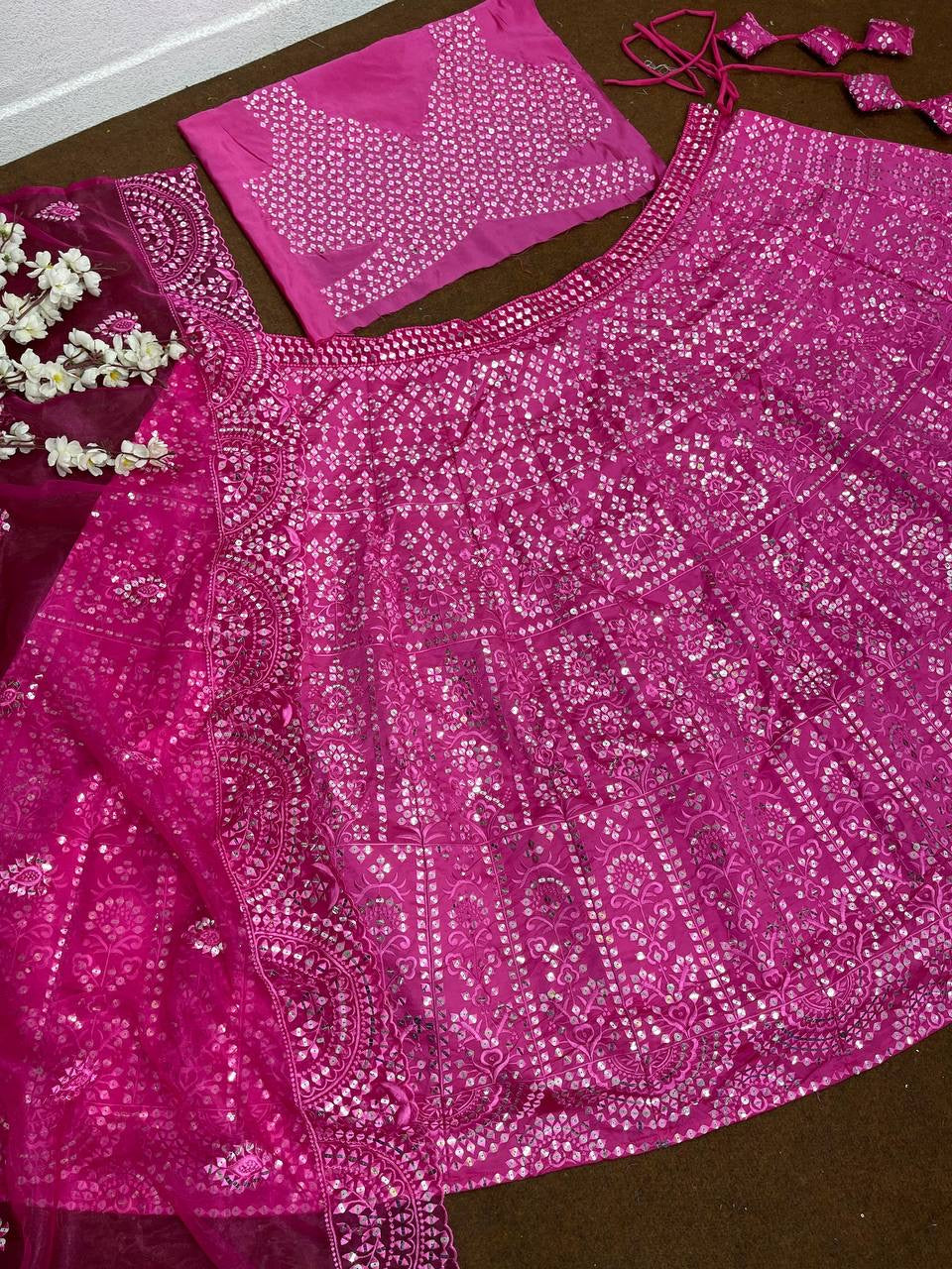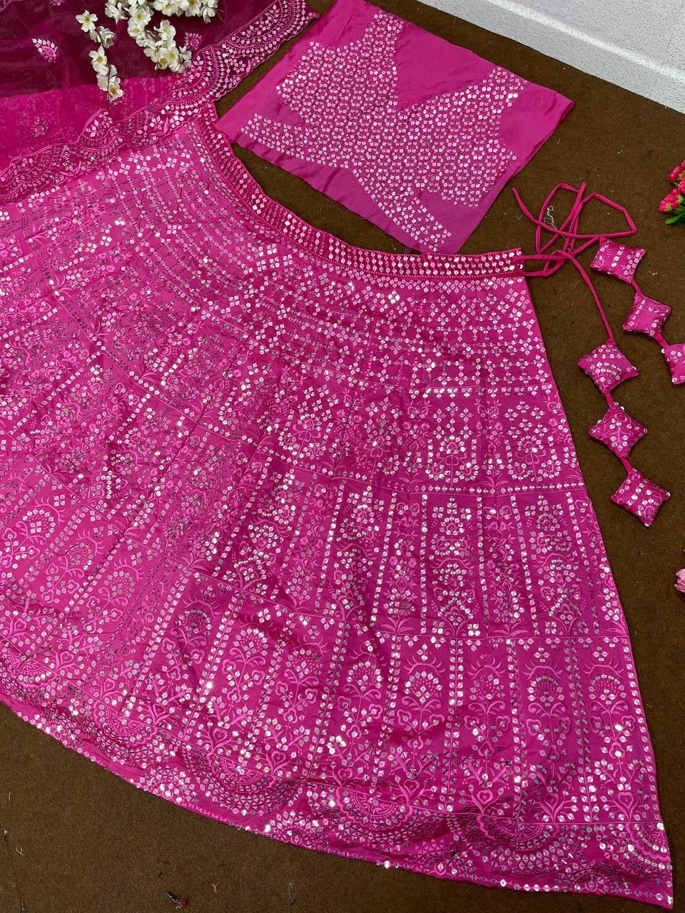 #LEHENGAS WORK : HEAVY EMBROIDERED 9 MM SEQUENCE WORK *3 MTR FLAIR CAN-VAS, CAN- CAN, FANCY LATKAN*