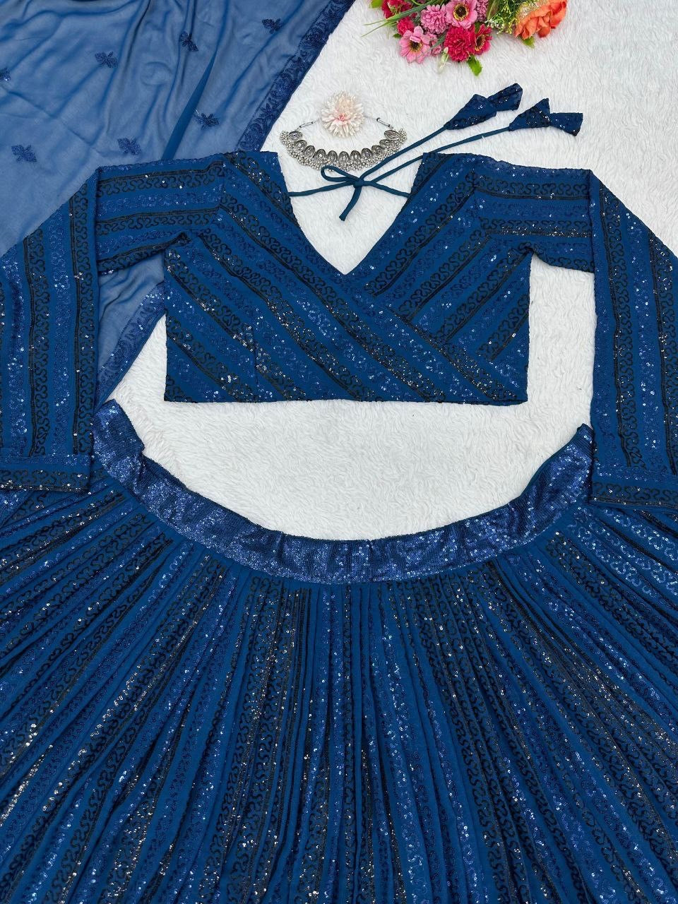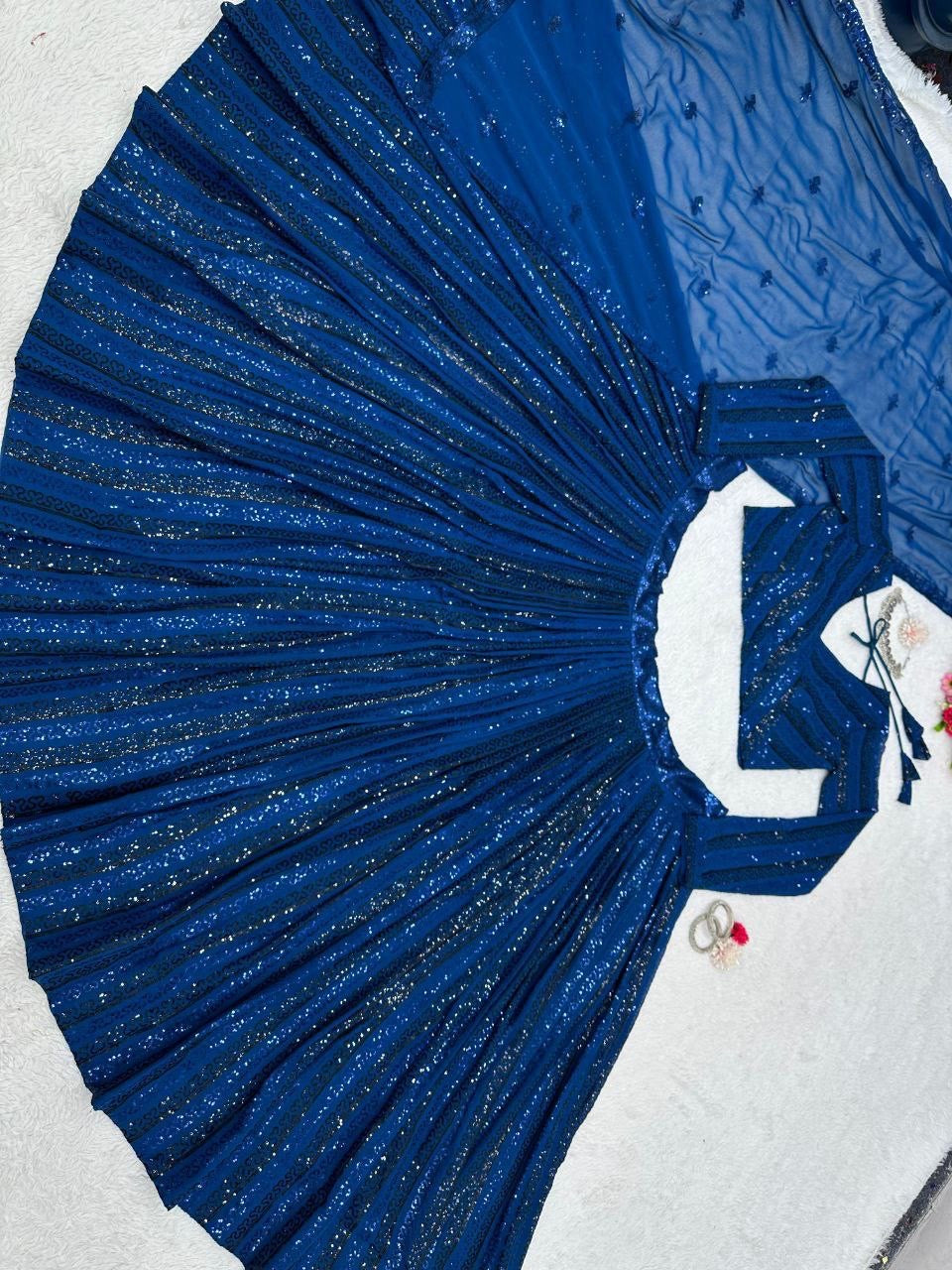 Partywear dark cobalt blue sequins Lehenga