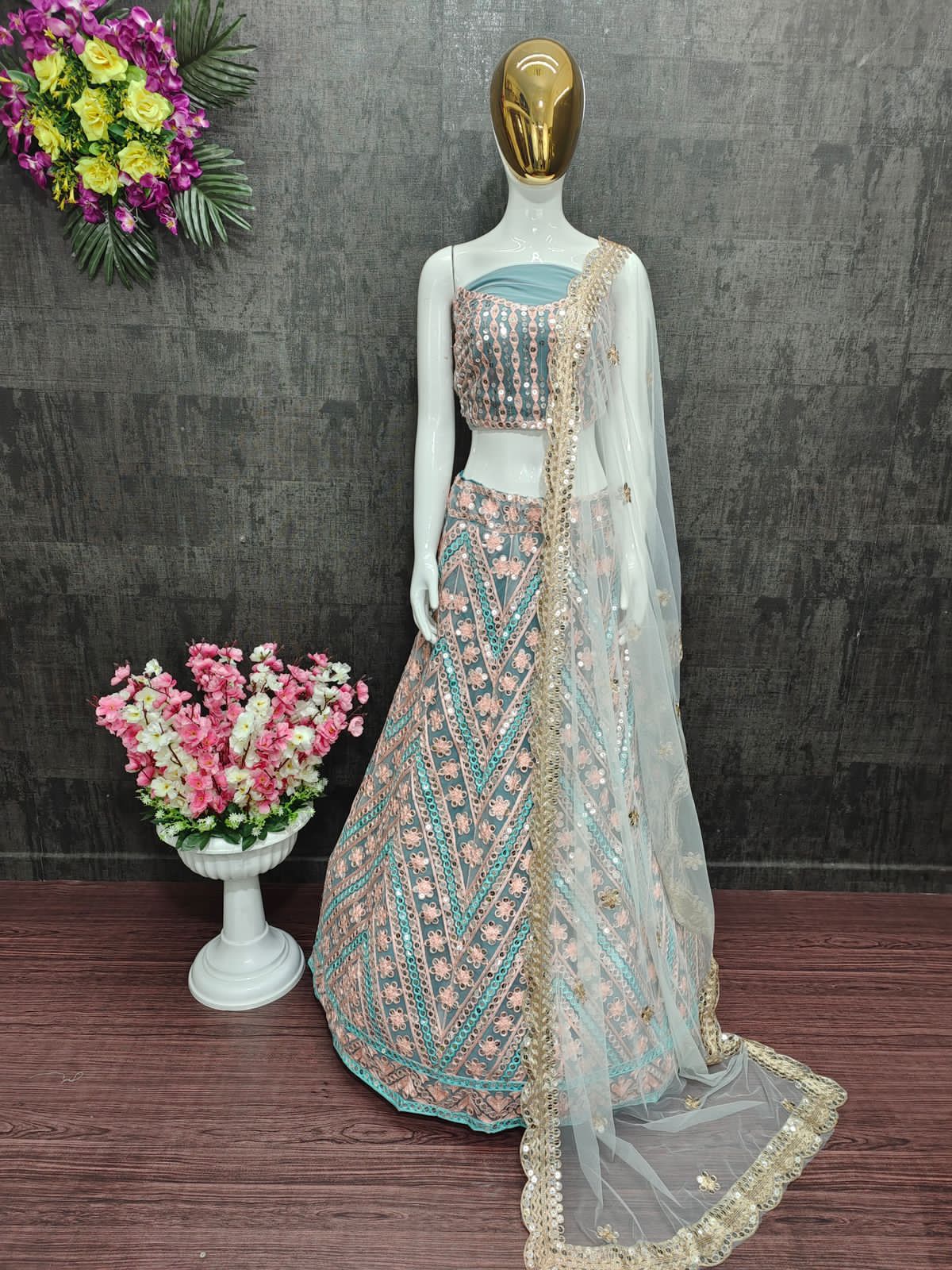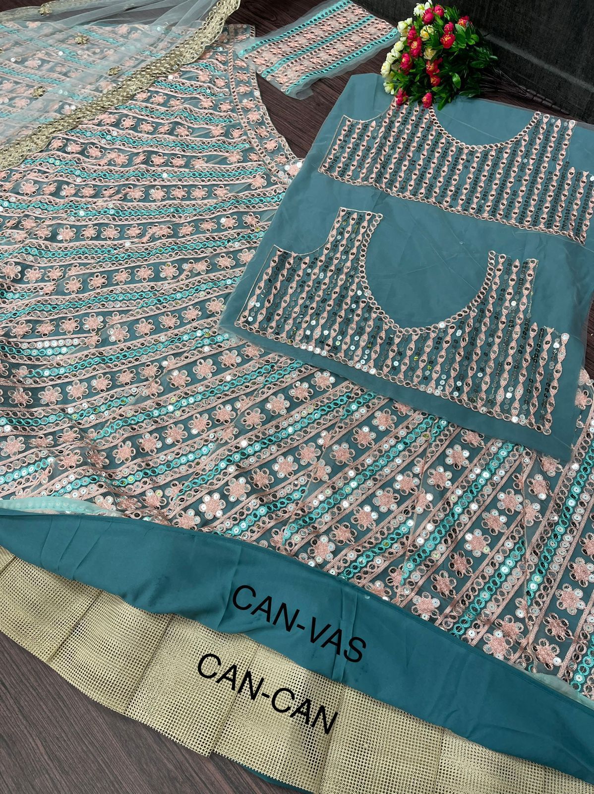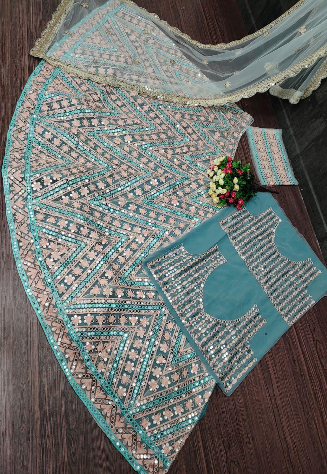 #LEHENGAS WORK : HEAVY CHINE STITCHED WITH 9 MM SEQUINS WORK .CAN-CAN , CANVAS FITTING*