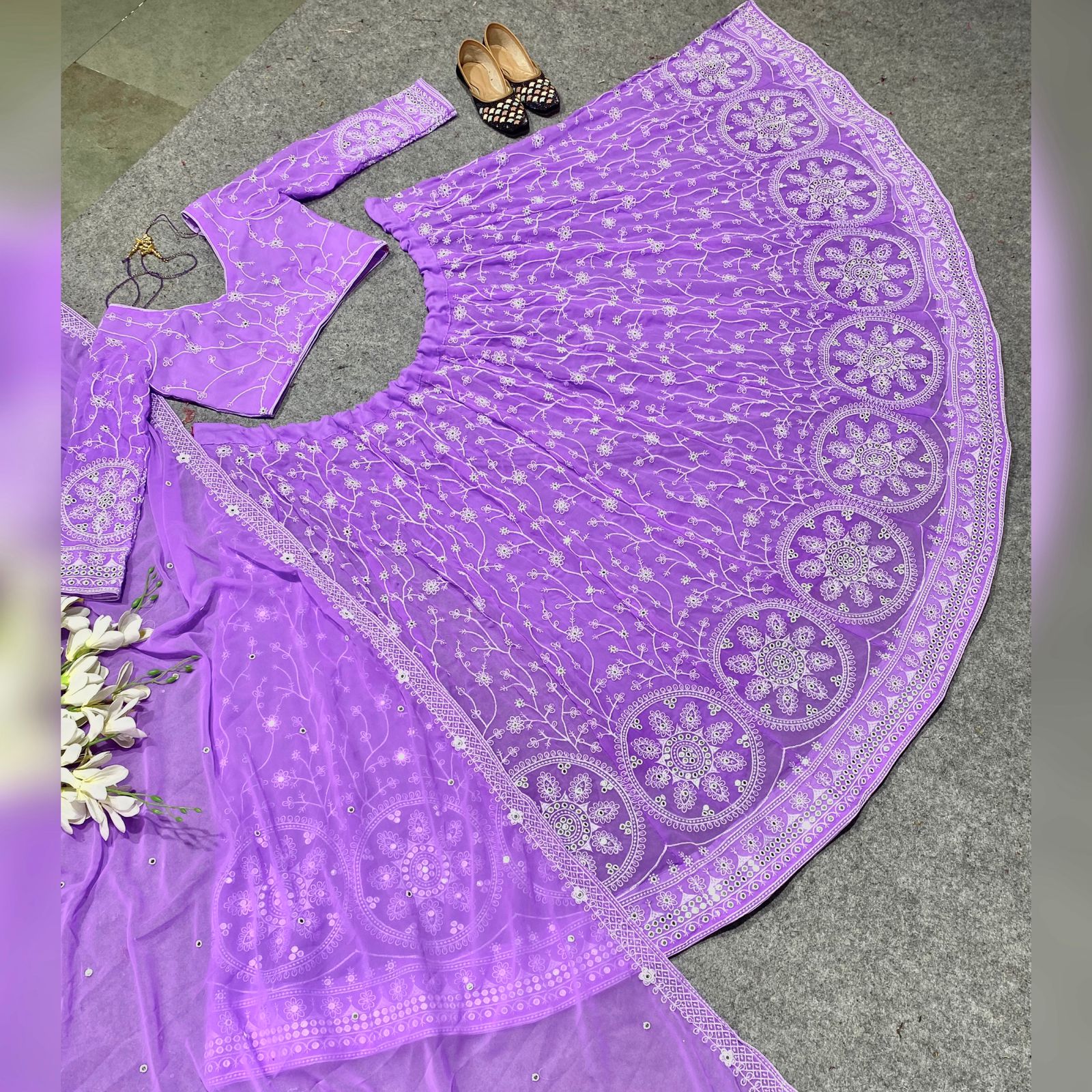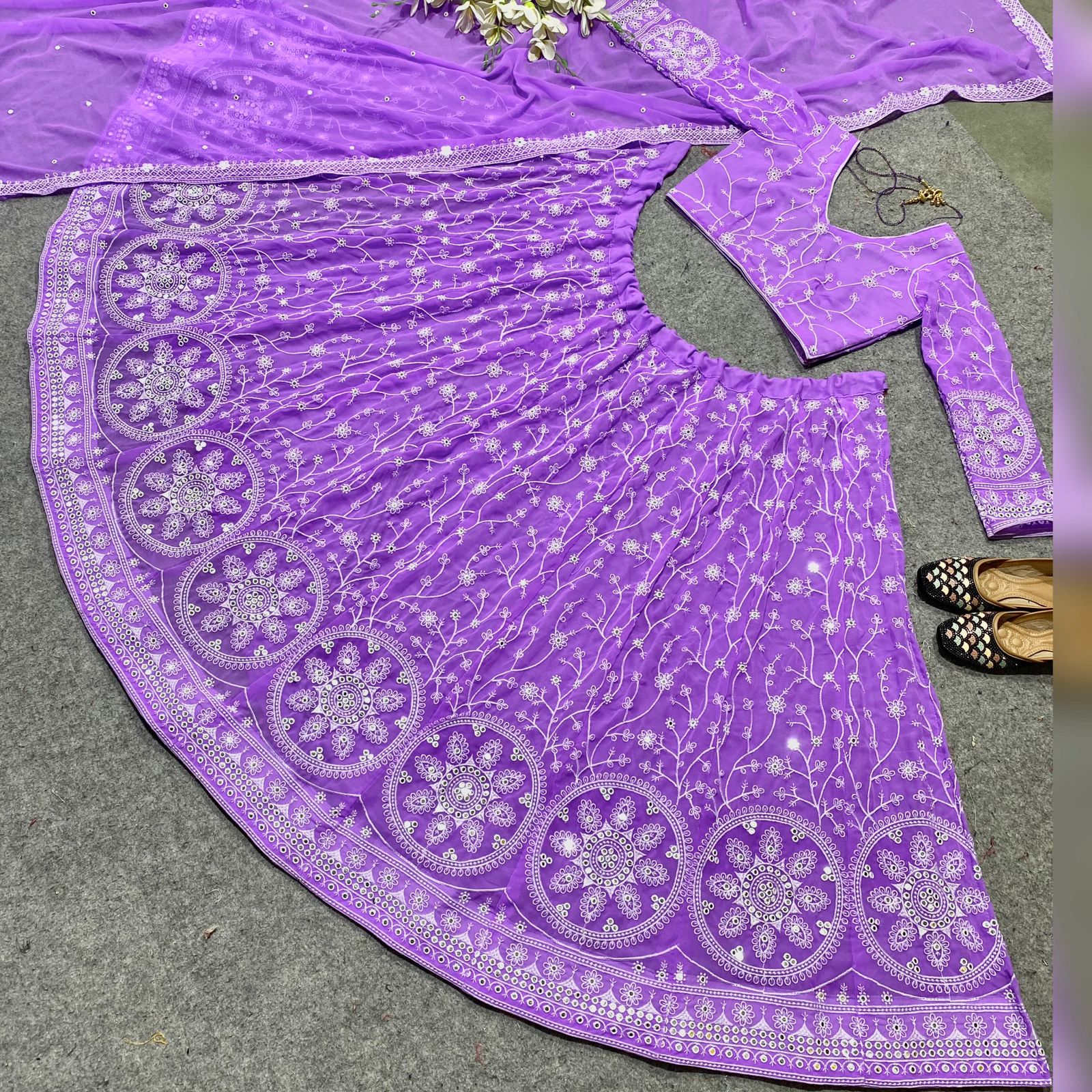 Orchid purple sequins embroidered Lehenga (with long sleeves)