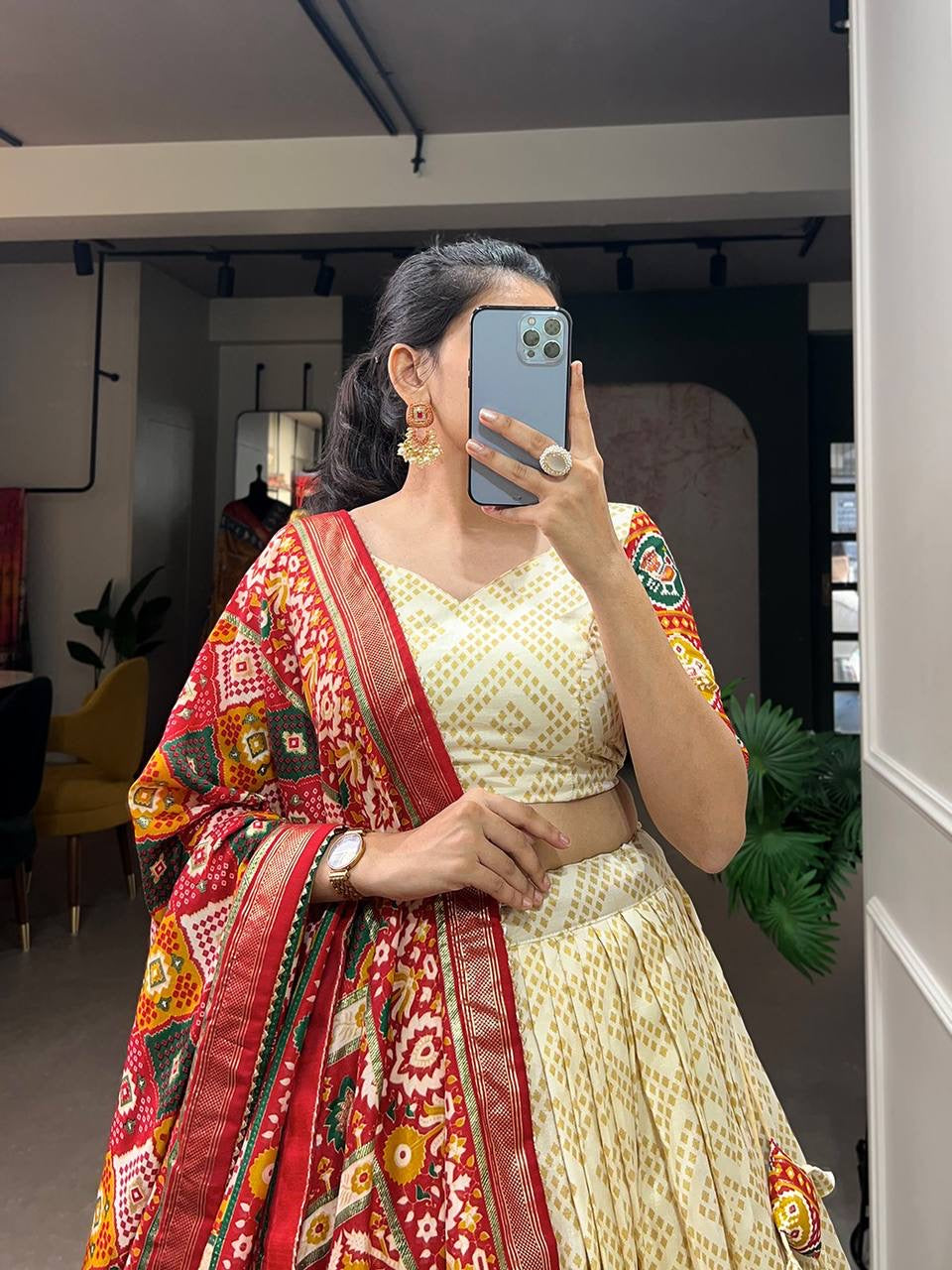 Royal ensemble of bandhej and patola print Lehenga in offwhite