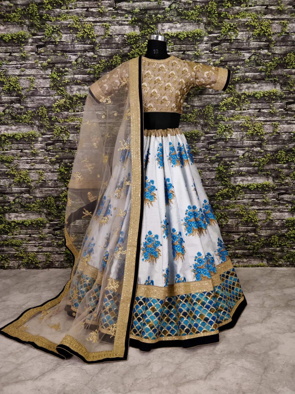 Botanical Flower Butta printed on lehengas with Embroidered blouse.