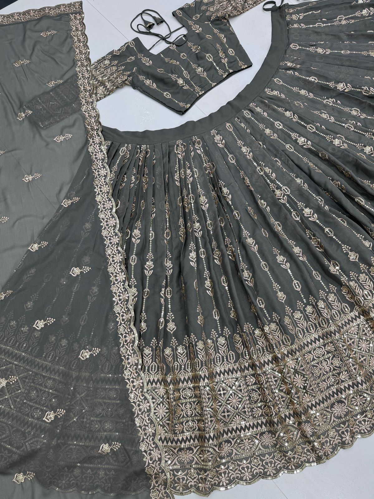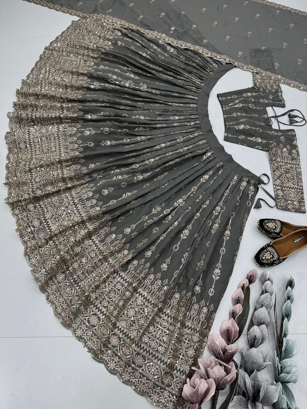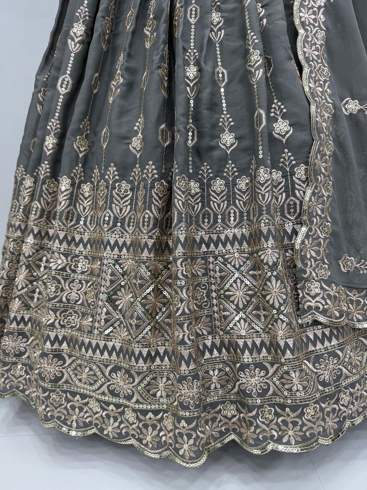 #LEHENGAS WORK : HEAVY EMBROIDERED SEQUNCE WORK WITH *3 MTR FLAIR CAN-VAS, CAN- CAN*
