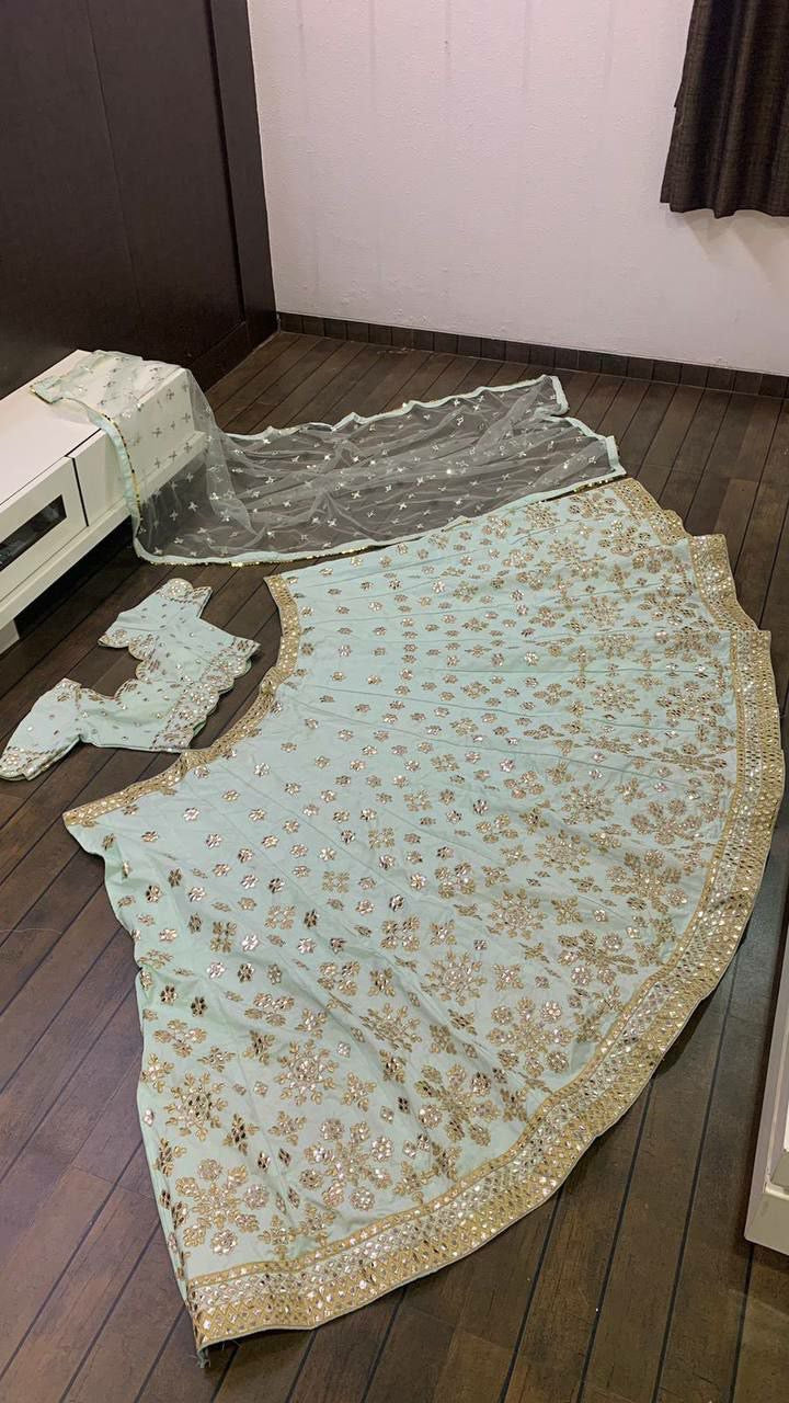 Mulberry silk lehnga with paper mirror work & zari work all over