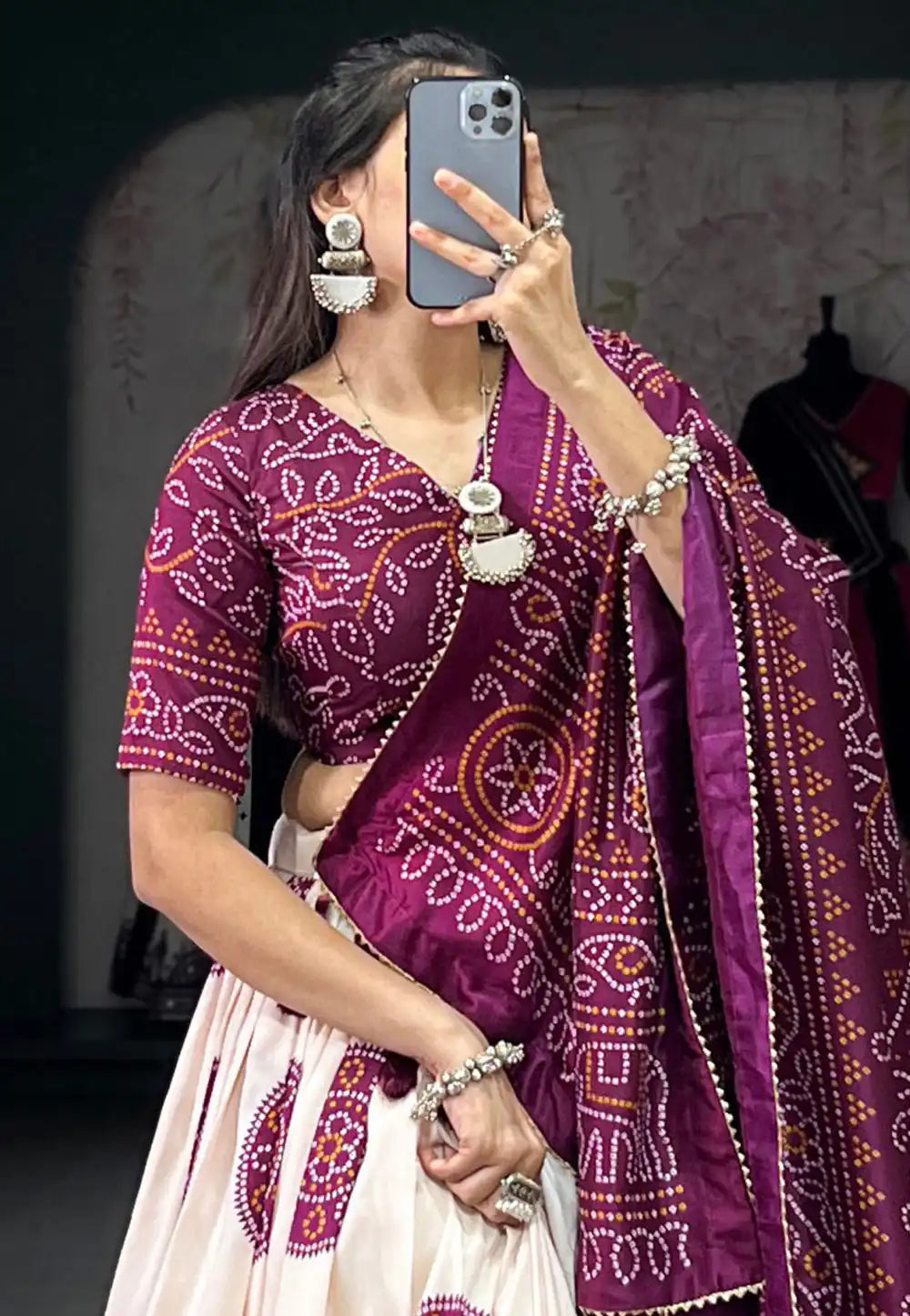 Lehenga Work : Bandhej Print