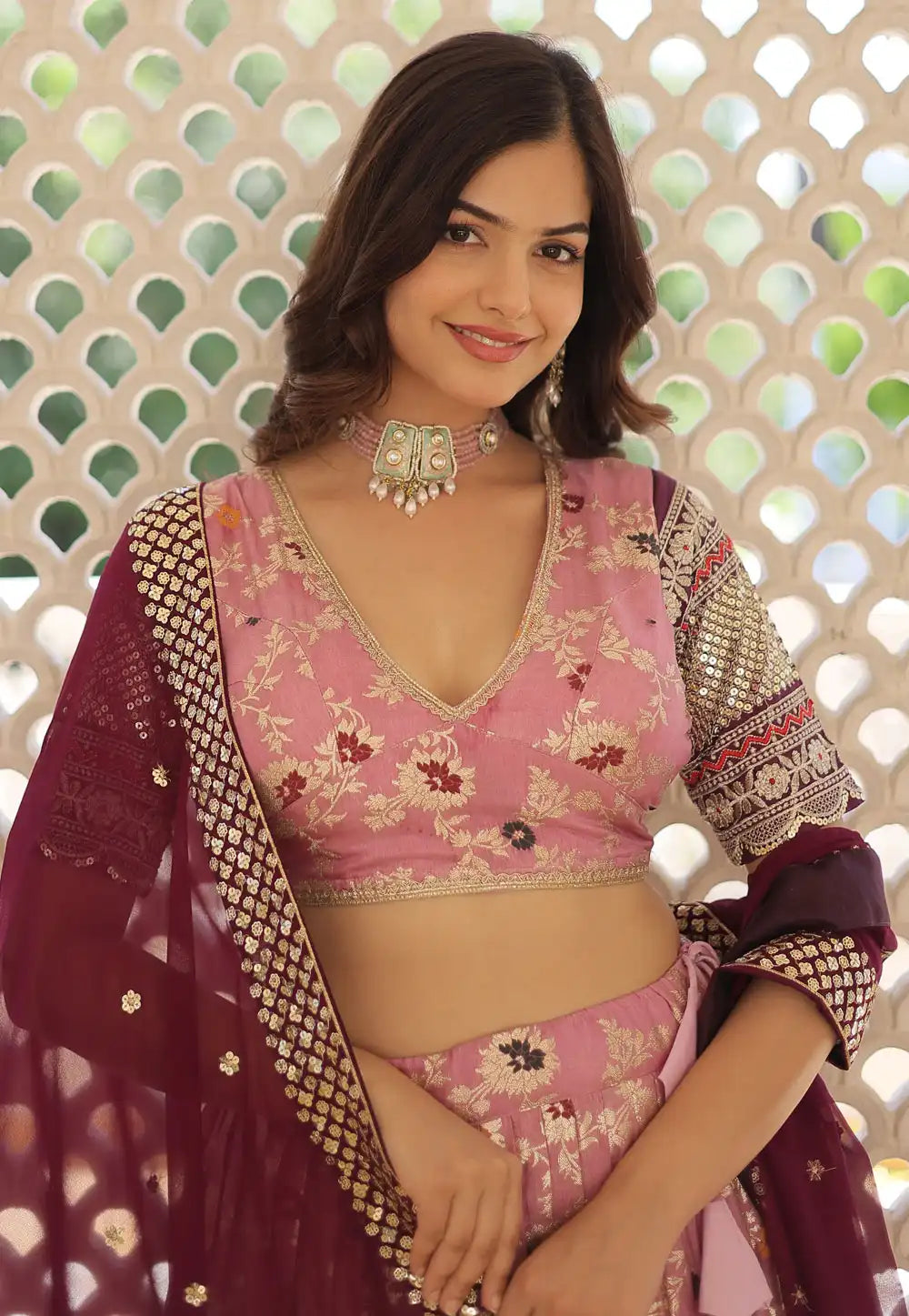 Fabric & Work :-  Blooming With Sequins Embroidered Lace Border
