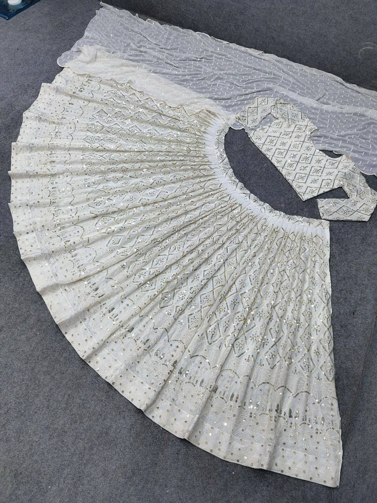 💃🏻*Lehenga Fabrics :* Faux Georgette With Heavy Embroidery And 5mm sequins Work With Canvas Semi stitched, 3m flair, inner micro cotton.