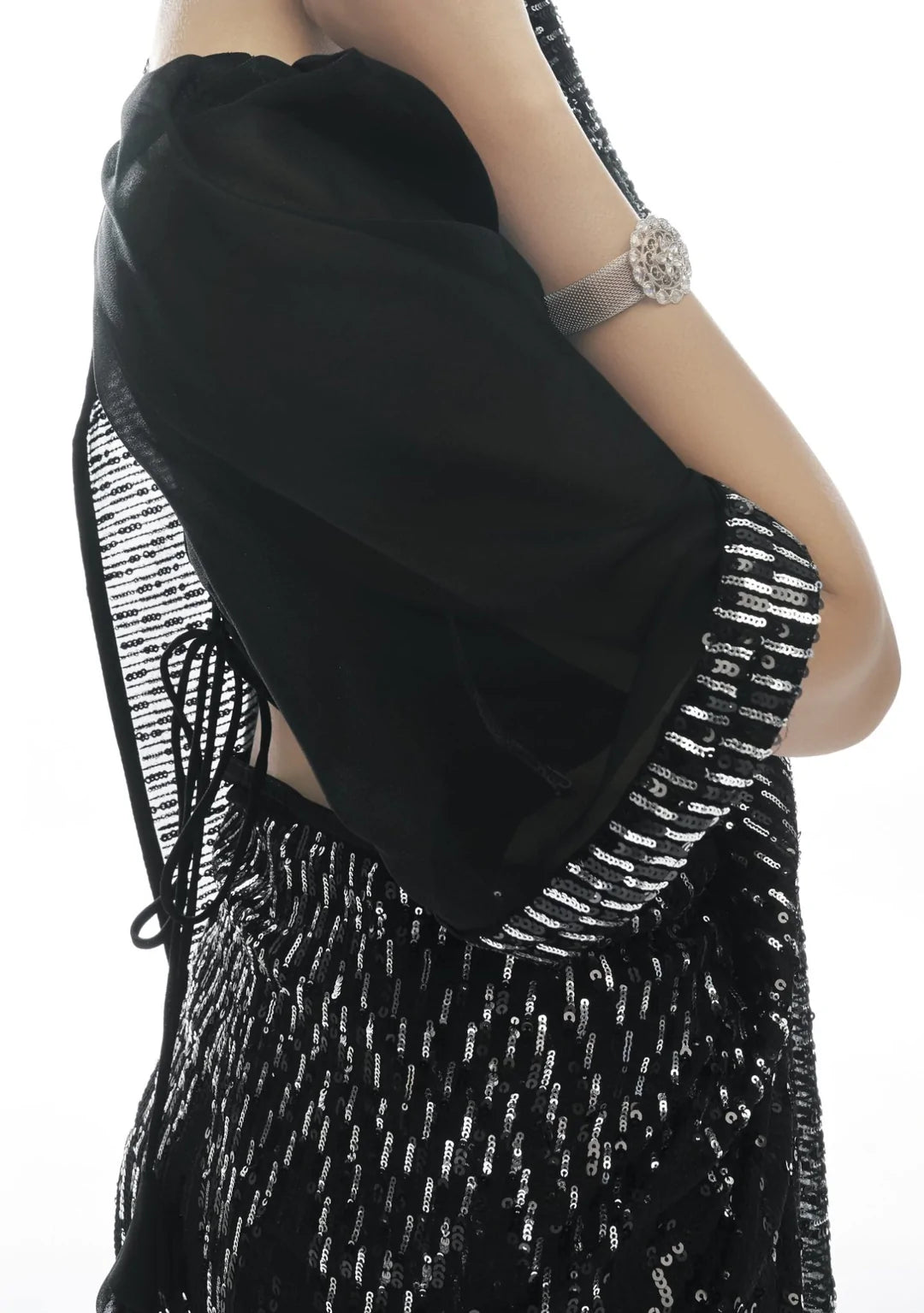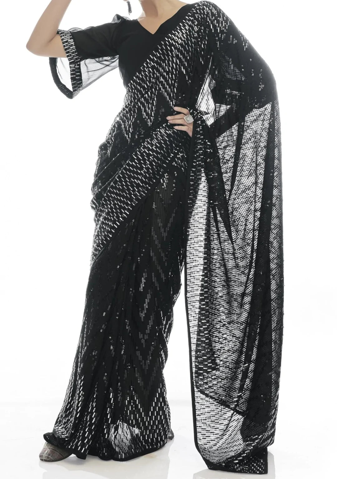 Georgette Fabric, Beautiful thread and sequins embroidery work.