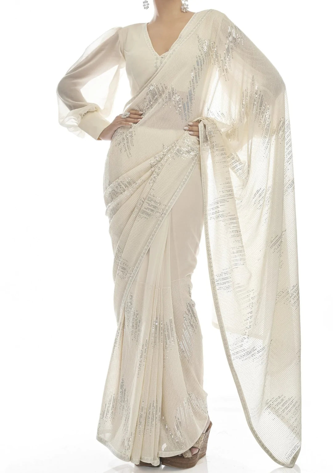 Georgette Fabric, Beautiful thread and sequins embroidery work.