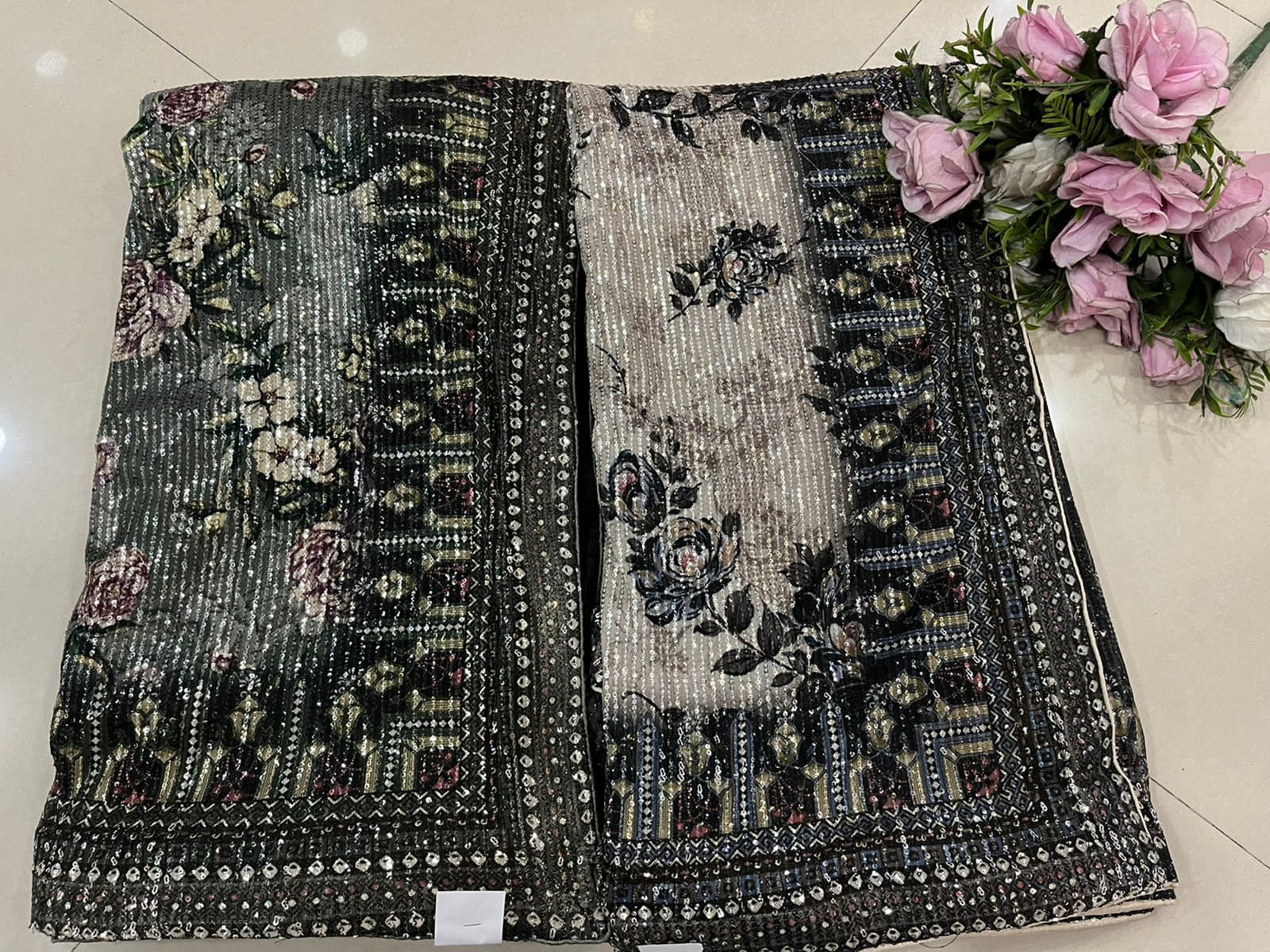 Georgette sequins saree, 5.5m and 0.8m blouse piece fully sequinned.