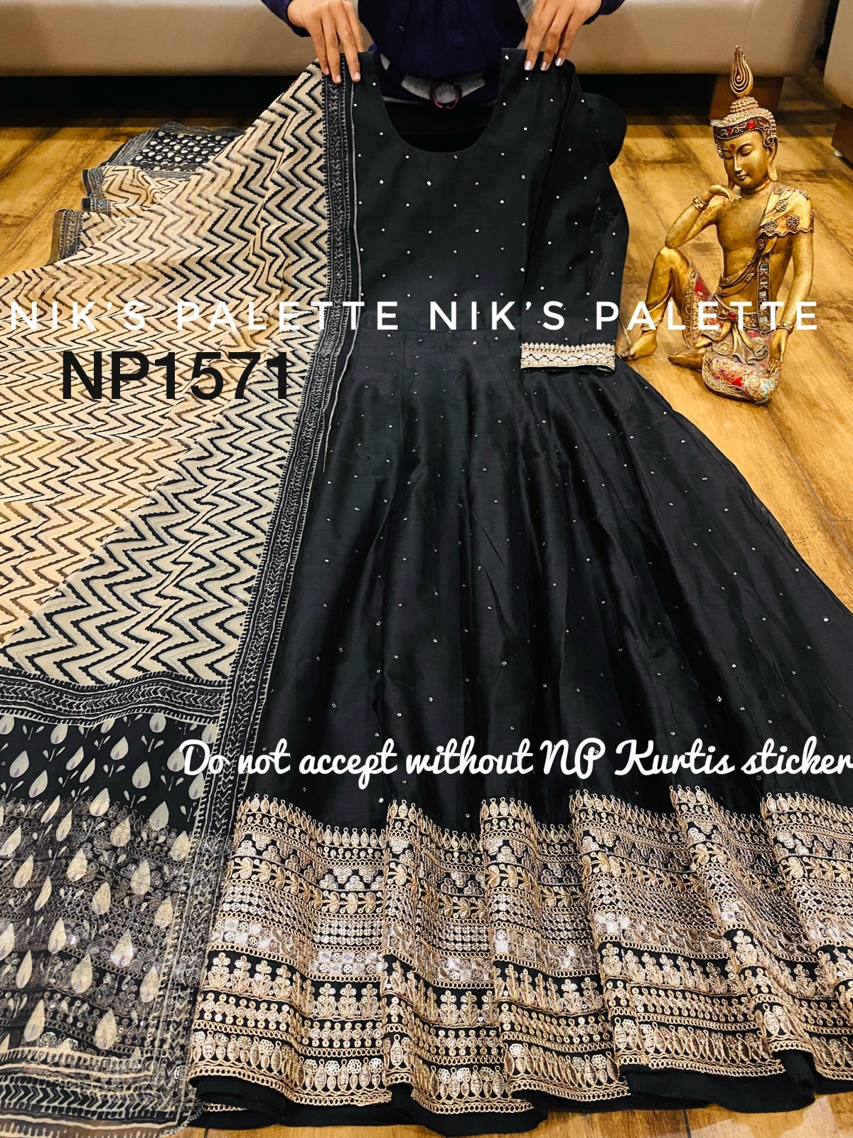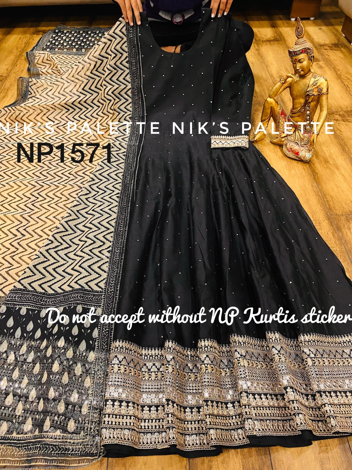 Premium Chanderi silk anarkali Gown with beautiful sequins work all over and heavy zari sequins work on hemline and sleeves
