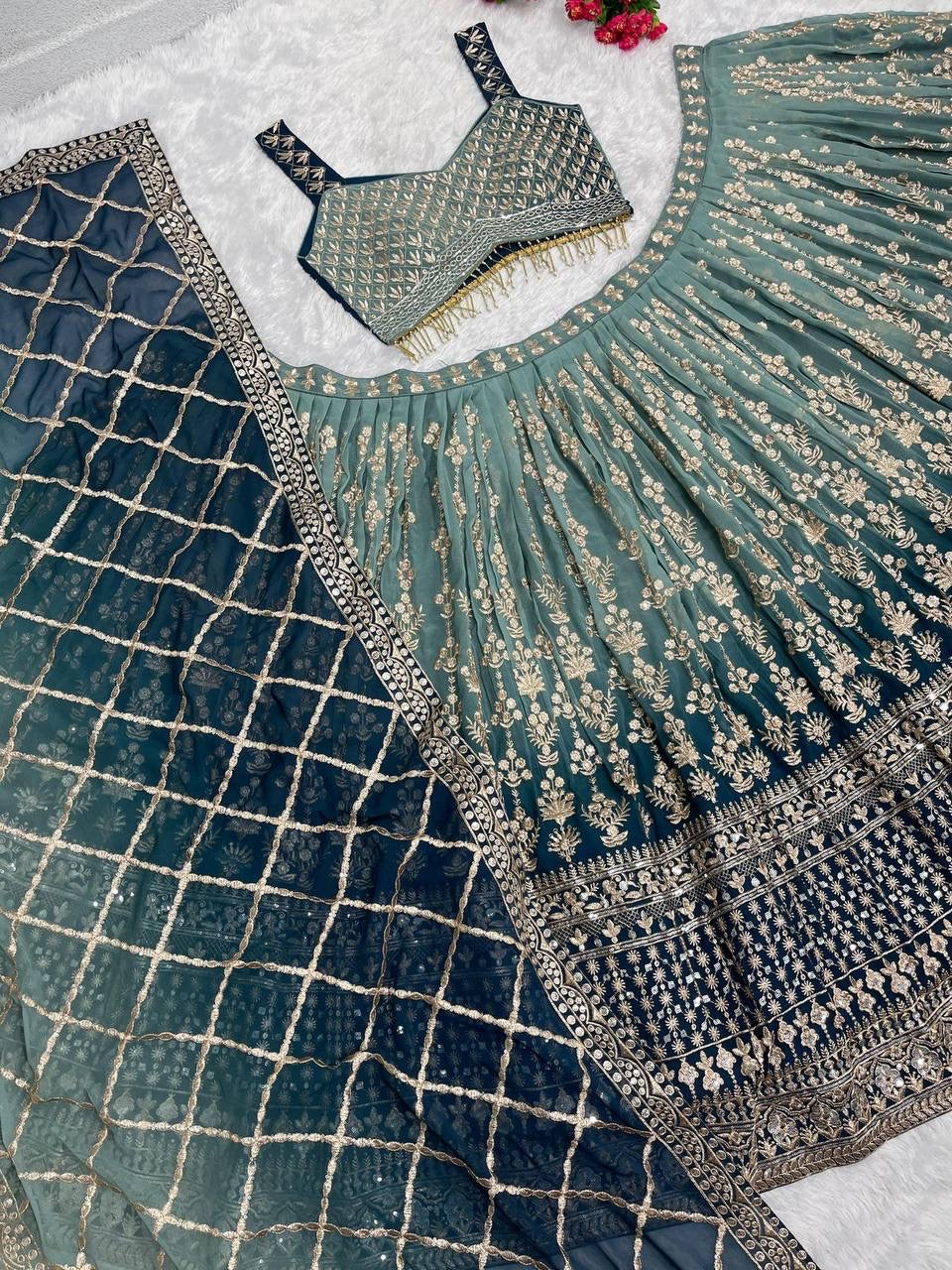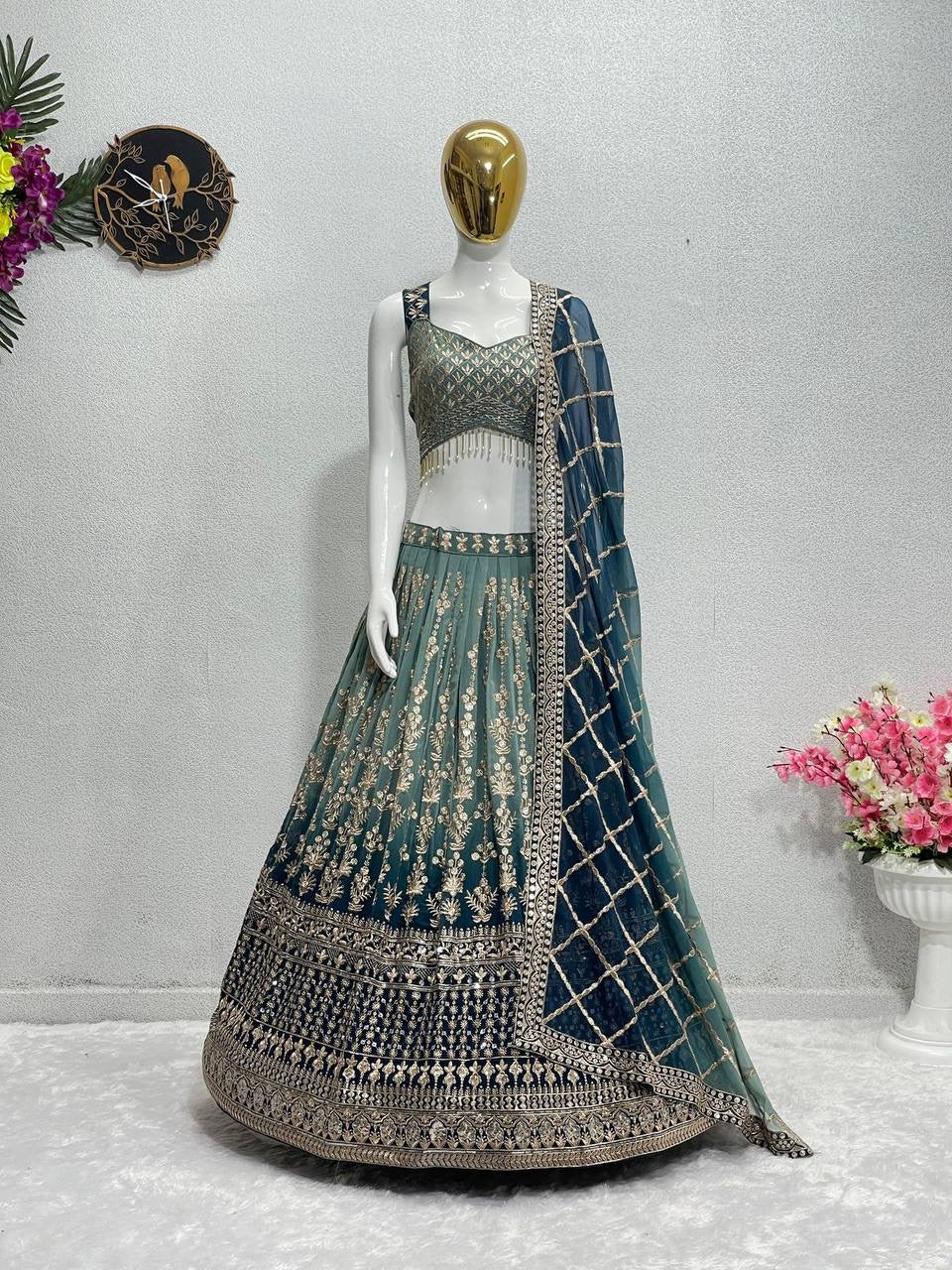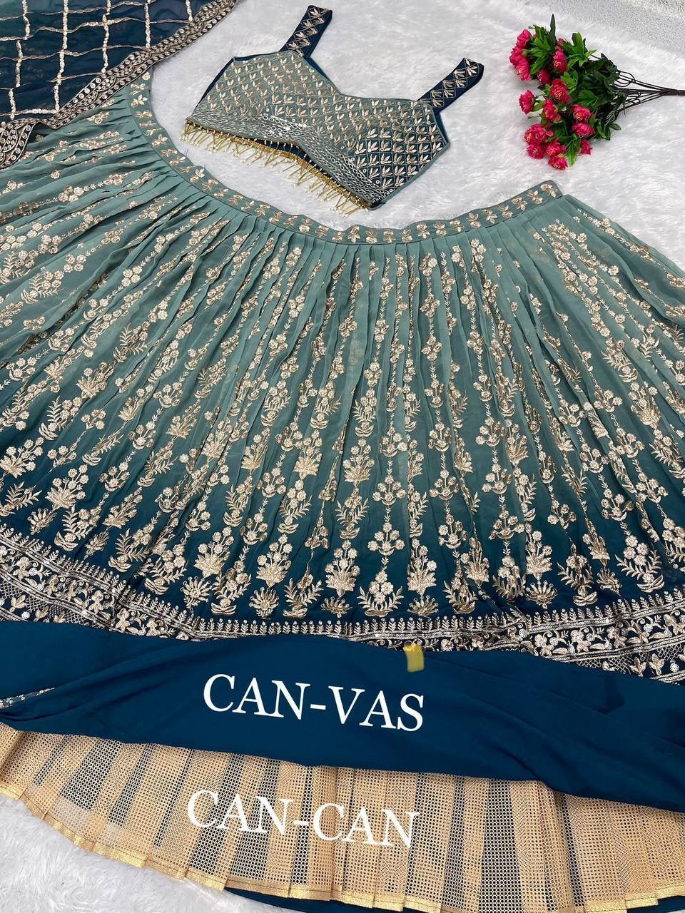 #LEHENGAS WORK : HEAVY EMBROIDERED SEQUNCE WORK WITH *3 MTR FLAIR CAN-VAS, CAN- CAN*