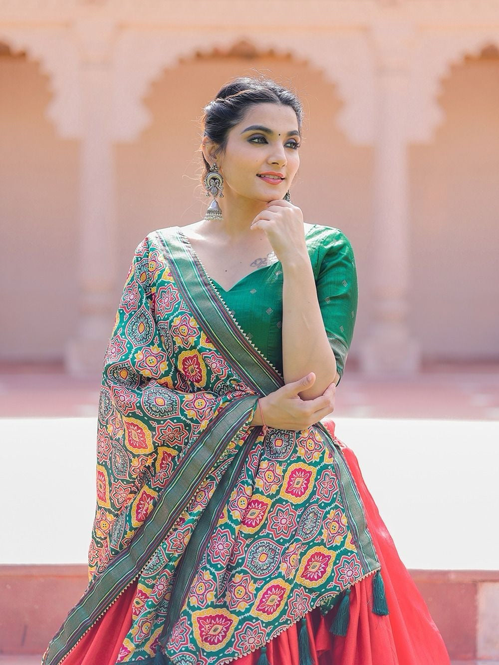 Dupatta Work : Foil Print with Gotta Patti Lace Border also comes with tassels